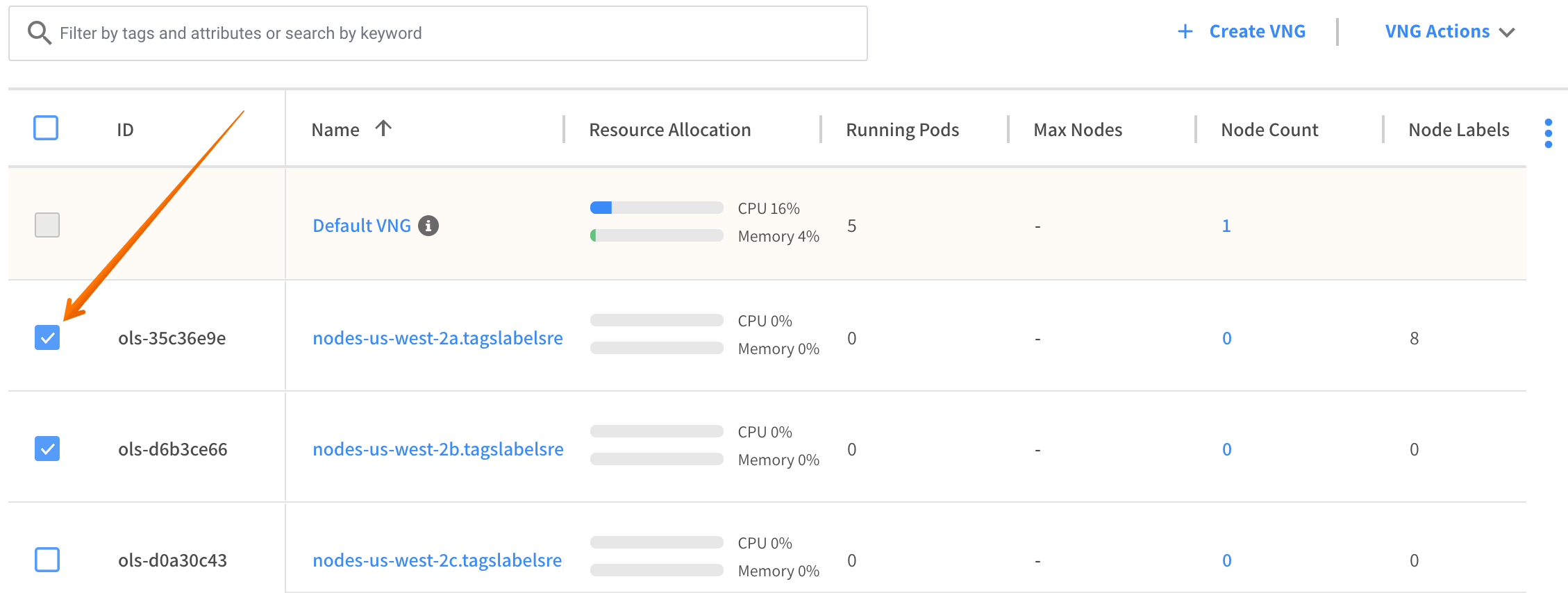 Ocean virtual node groups (VNGs) let you run different node groups within a single Ocean cluster. This way, you can run different groups of nodes on the same cluster, so that for example: