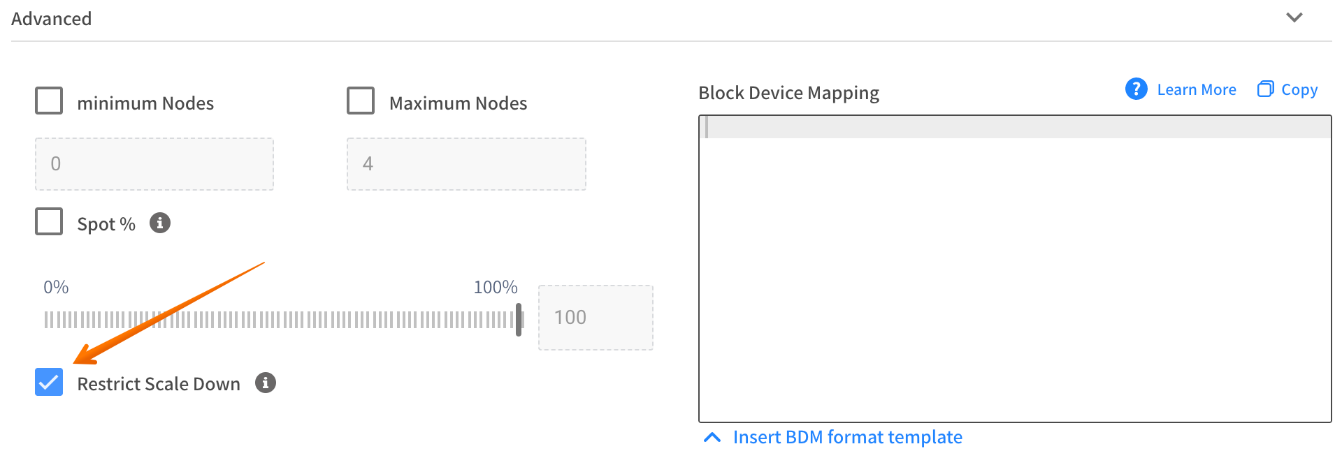In the Spot API Create Cluster/Update Cluster, set